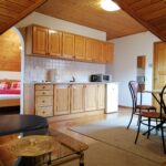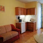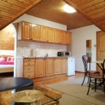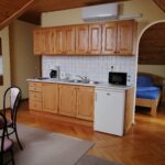 - Jól felszerelt konyha elektromos főzőlappal, hűtőszekrénnyel, kávéfőzővel, vízforralóval, mikrohullámú sütővel